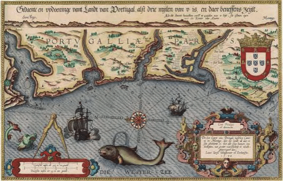 图 2,卢卡斯 • 扬松 • 瓦格纳尔:《航海之镜》,铜版彩印,1584 年