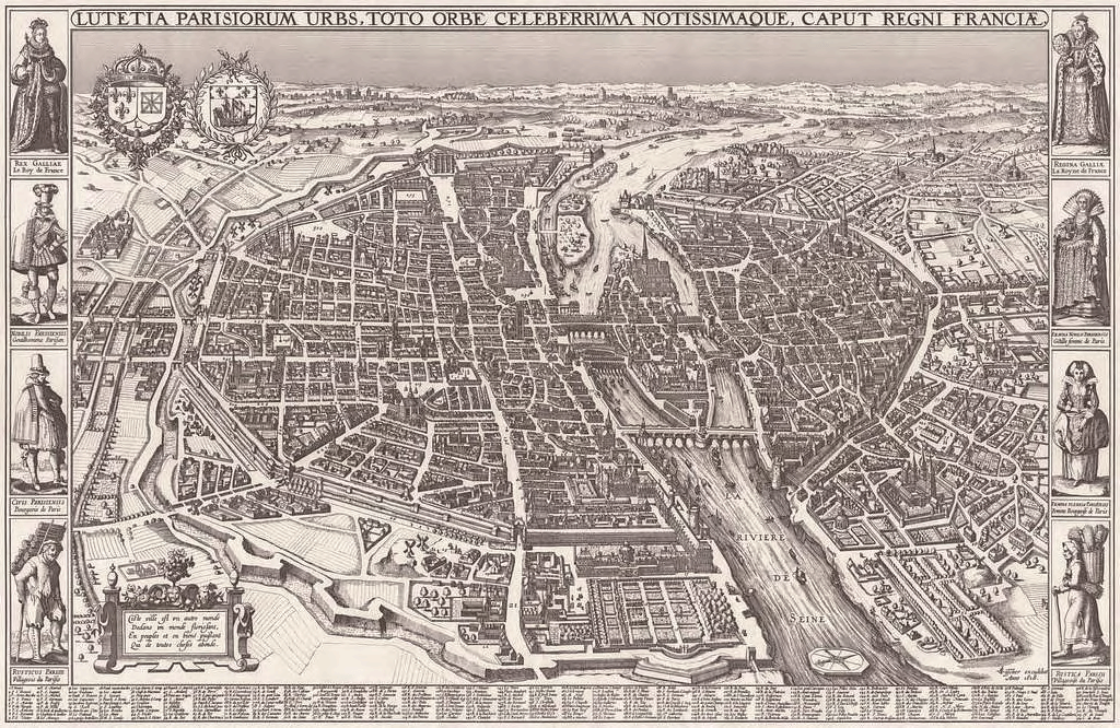 图 5,克拉斯·扬斯·维舍尔:《巴黎鸟瞰图》,铜版,1618 年