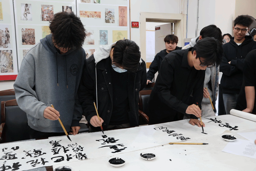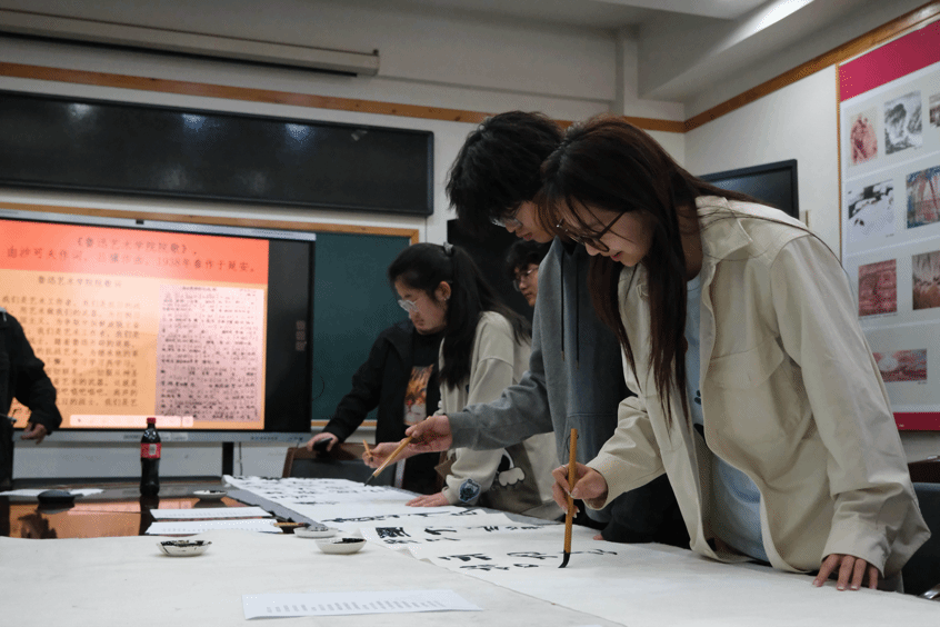 为传承和弘扬鲁艺精神,赓续红色血脉,激发学生的爱校情怀,2025年5月7日,由鲁迅美术学院中国画学院主办,中国画学院书法社团承办的“鲁艺精神 传承有我”“五四青年节”主题系列活动成功举办。活动共包括校史教育和书写书法长卷两项内容,旨在引导学生深入了解鲁美历史、传承鲁艺精神,增强爱校荣校情怀,坚定文化自信。