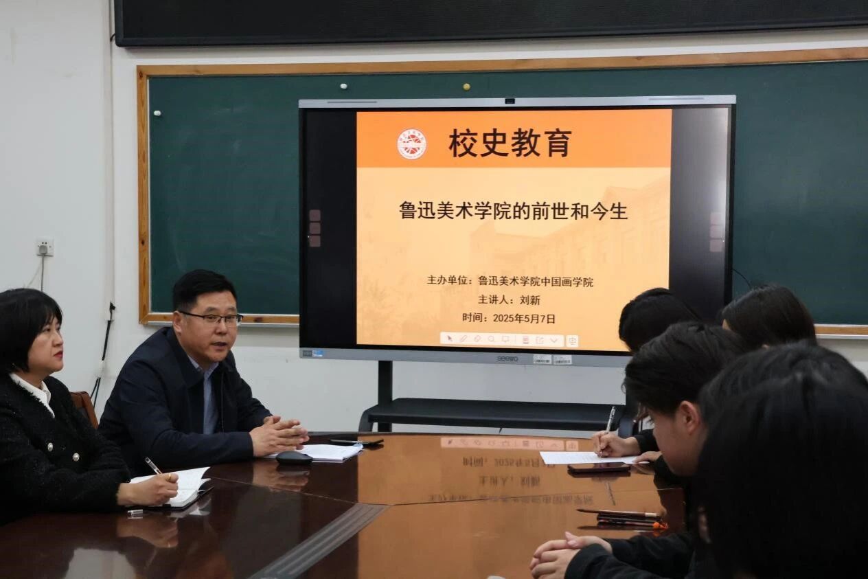首先,中国画学院党总支刘新书记从延安鲁艺的创立背景与历史使命、从延安走向沈阳的发展历程,再到新时代鲁艺人所肩负的文化使命与责任担当三方面,为同学们上了一堂生动的校史教育课,使全体同学对鲁美的发展历程有了更深刻的认识和了解。刘新书记在讲课中强调艺术创作要深入生活,秉承“艺术为人民服务”的宗旨。倡导同学们积极以主旋律为一切创作的出发点,培根铸魂,以高尚的情操,塑造人民满意的艺术作品。