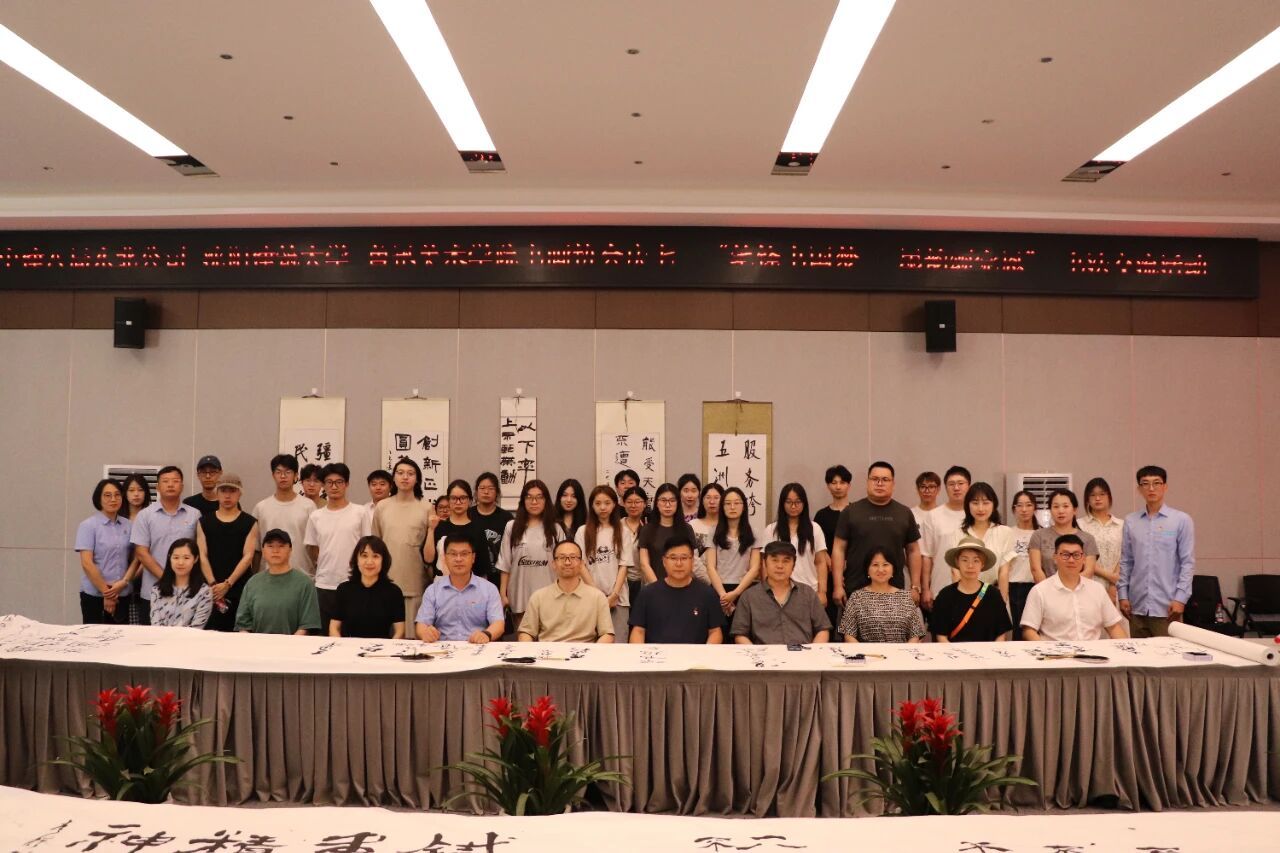 活动最后,全体与会人员合影留念,为这场充满文化韵味和红色情怀的书法盛宴画上圆满句号。此次书法交流活动是中国画学院发挥专业特色促进美育教育、加强校企联动、服务社会文化发展的一次生动实践。活动不仅以艺术的形式向党的生日献礼,弘扬了主旋律,更通过书法艺术的桥梁,激发了参与者的爱党爱国热情,为传承鲁艺红色基因,弘扬中华优秀传统文化贡献了力量。
