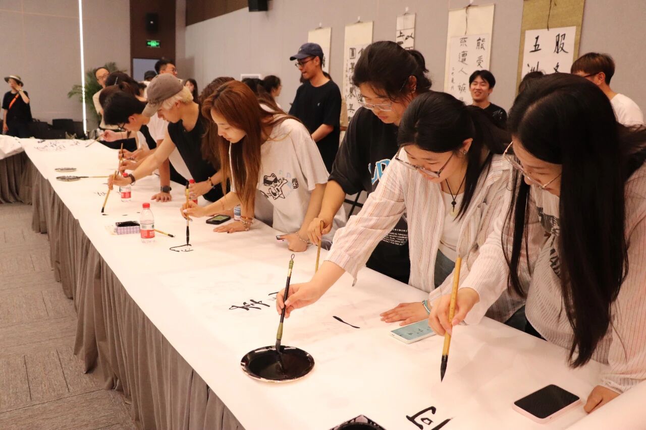 中国画学院党总支书记刘新、院长赵斌、副书记郜尔哲和师生党员代表与沈阳建筑大学设计艺术学院师生党员代表、沈阳建筑大学书画协会师生代表、中建八局书画协会成员齐聚一堂,以笔墨寄情,共庆党的华诞。本次活动以书法艺术为载体,深情表达对党的热爱与祝福,搭建起高校与建筑名企的沟通桥梁,促进专业高校师生与企业书法艺术爱好者技艺切磋,推动文化交流互鉴,探索校企协同育人与文化共建新模式。